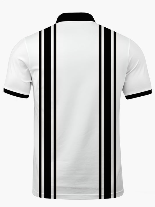 Black White Striped Print Männer Kurzarmknopf Poloshirt