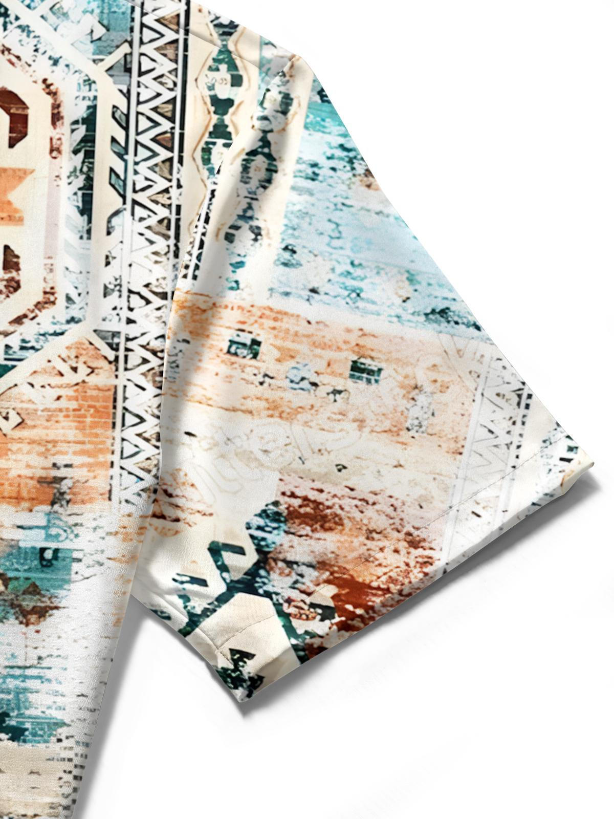 Vintage Ethnische Muster Druckmenschen Tasche Kurzarm Shirts
